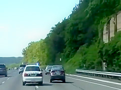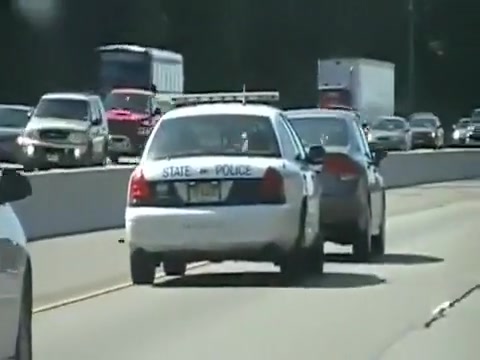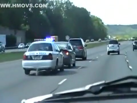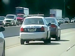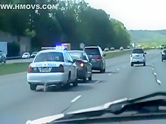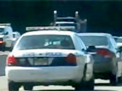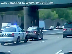 A cop is getting very annoyed with the woman driving slow in the fast lane so he takes matters into his own hands.