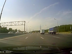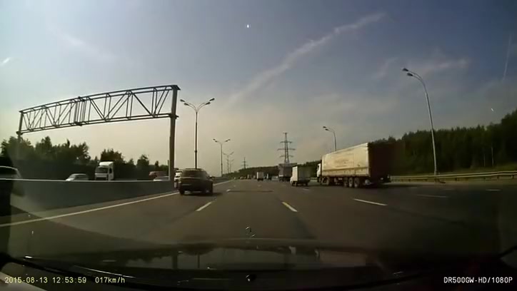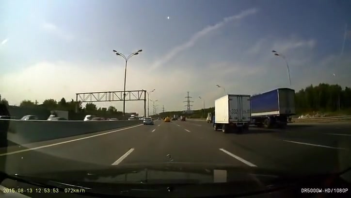 Couple On Motorcycle Get Sandwiched Between Trucks D...