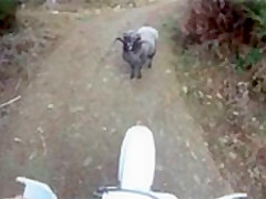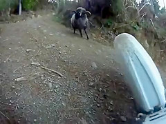Angry Ram Attacks Motorcyclist, You shall not pass!