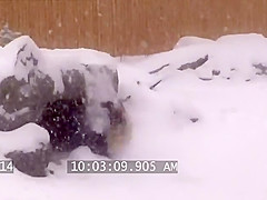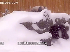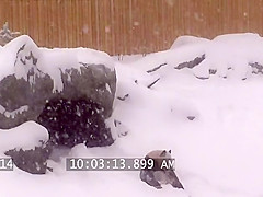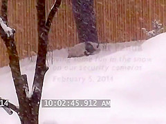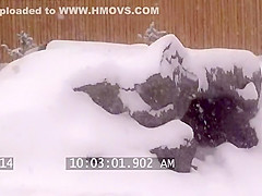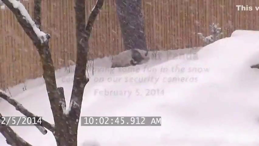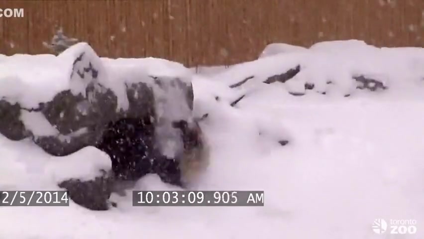 A giant panda enjoys a large snow storm at the Toronto Zoo. He couldn't be happier!