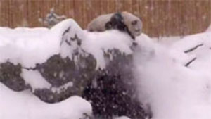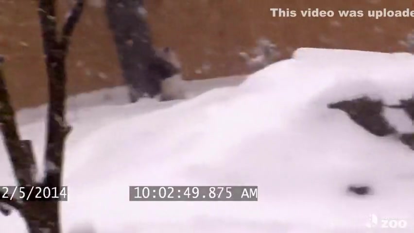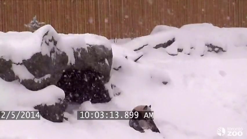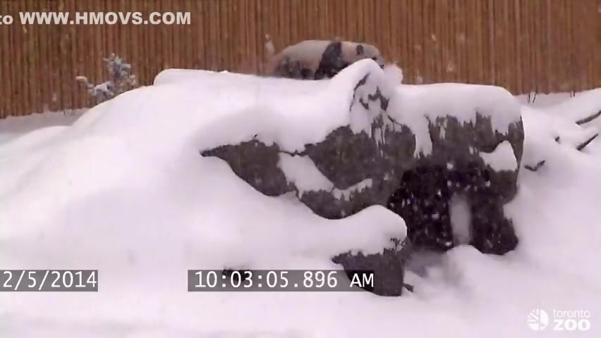 Giant Panda Enjoying The Snow at Toronto Zoo