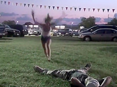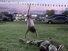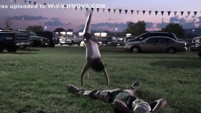 Hot Girl Flips Onto Dude's Nuts
