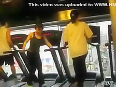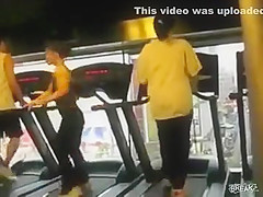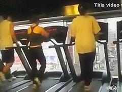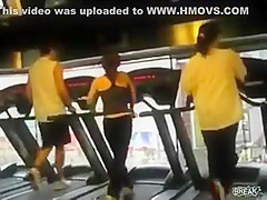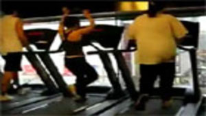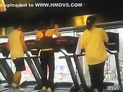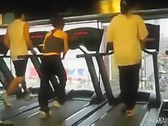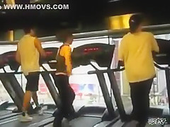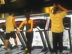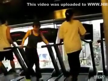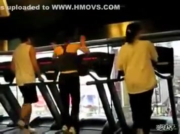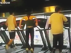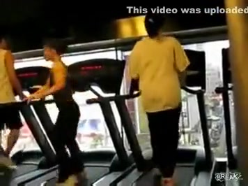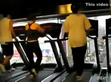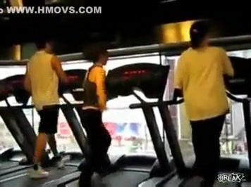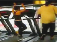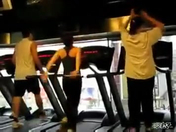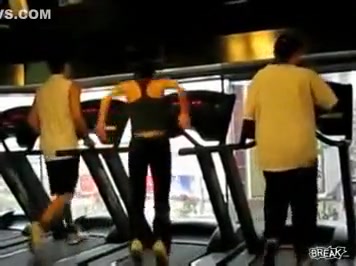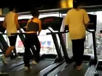 Some girl is dancing to the Barbie song while she is working out on a treadmill. You would think the people on each side would notice.