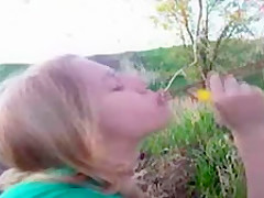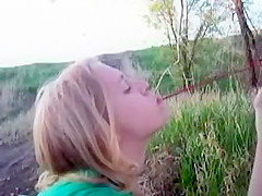 A chick decides to light a decent sized bottle rocket from her mouth.