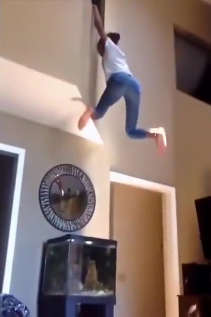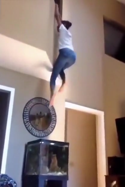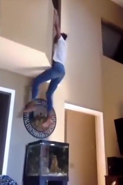 Girl Falls Onto Her Fish Tank From Second Floor