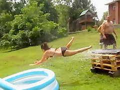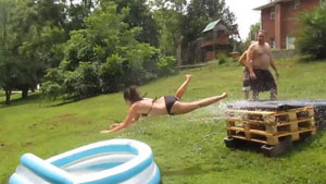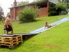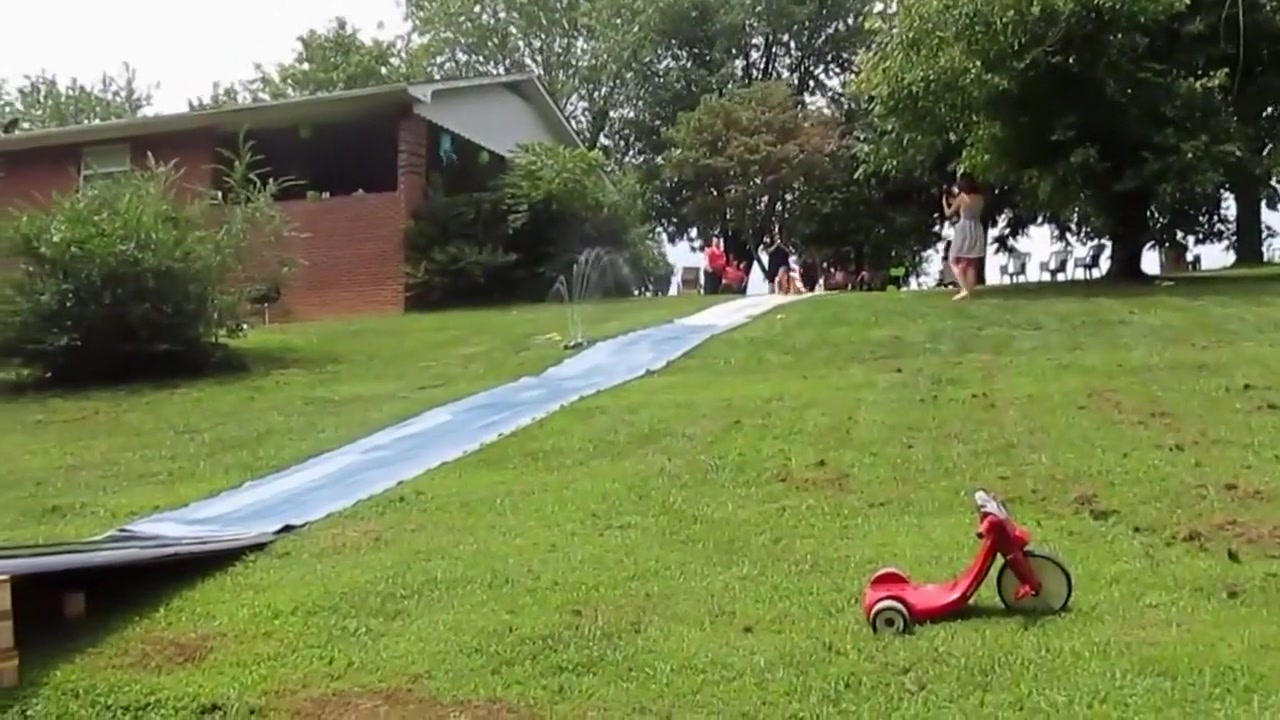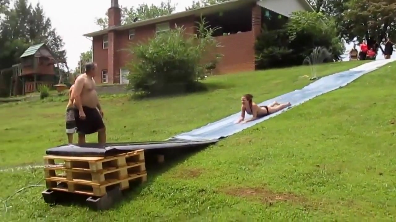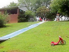 Girl Gains Too Much Speed On Slip-N-Slide