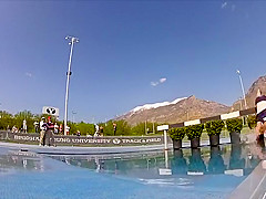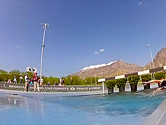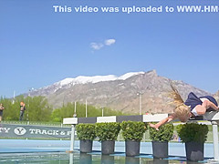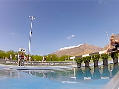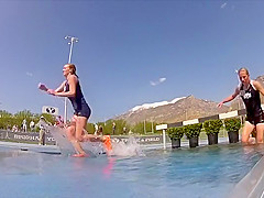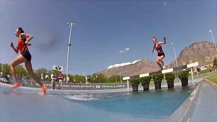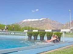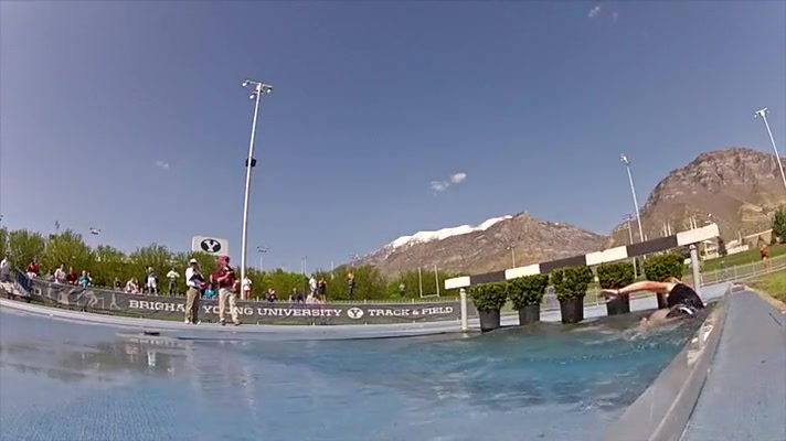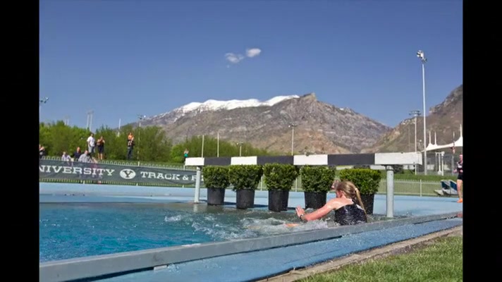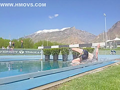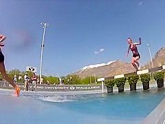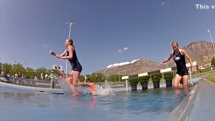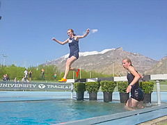 Girl Gets Wet During Steeplechase Hurdles Race
