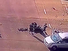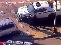 A criminal involved in a high speed chase pissed off the wrong woman. And what's with the guy flopping on the ground? lol