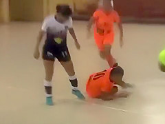 Girl Lashes Out With a Brutal Kick To The Face During Indoor Soccer Match