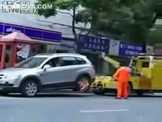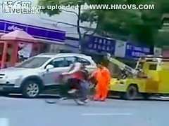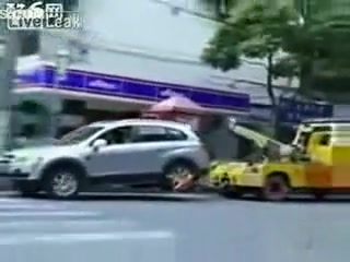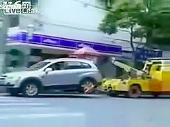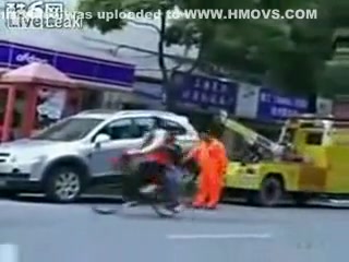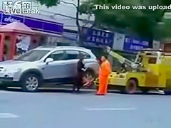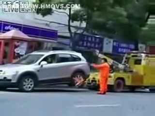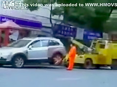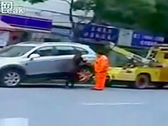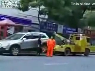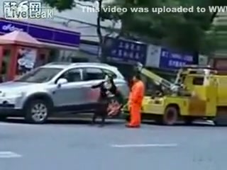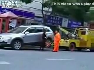 Talk about having some balls...lol This chick makes her point! She will not be towed.