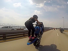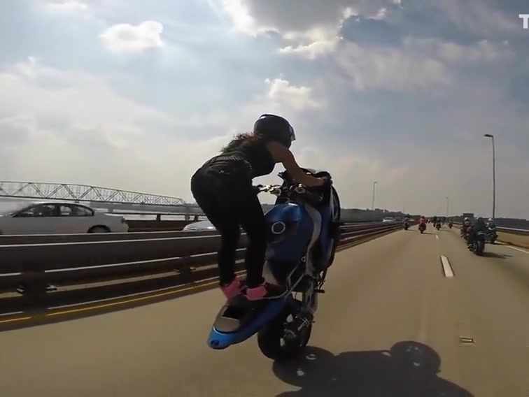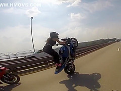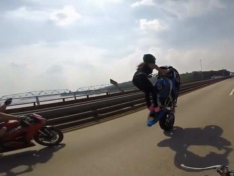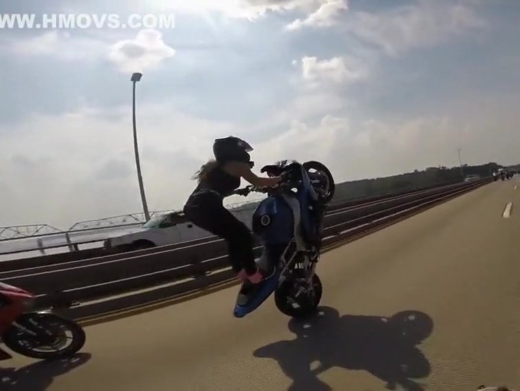Girl Rides Epic Wheelie Down The Highway