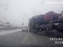 18 Wheeler Transporting Cars Loses Control