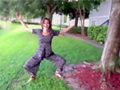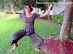 This chick is overly excited about her 5 dollar dress...I mean pantsuit!