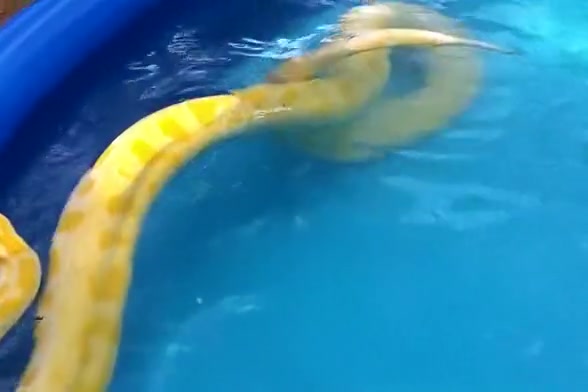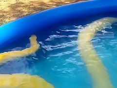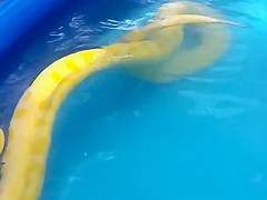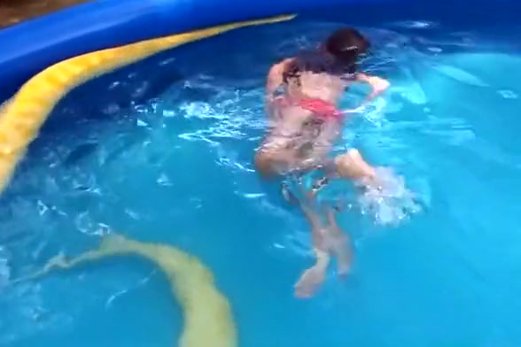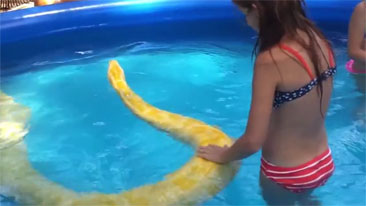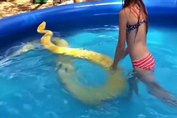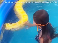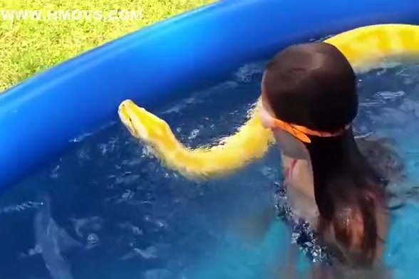 Girl Swims With a Python