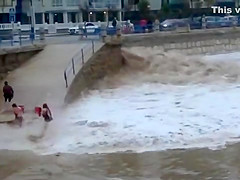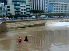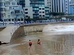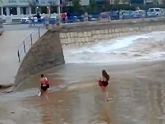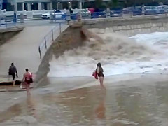 She was no match for a giant killer wave heading right at her. You're supposed to get your ass out of there, not stop and try playing in it.