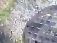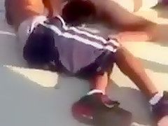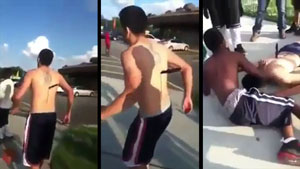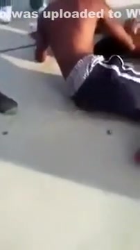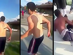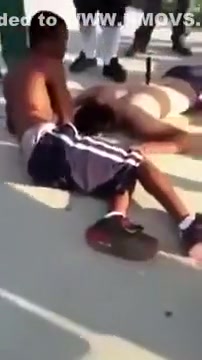 Earlier in the day this guy broke up with his girlfriend. He was playing basketball with his friends when she showed up with a knife and threw it at him. She hit him square in the back.