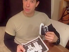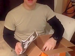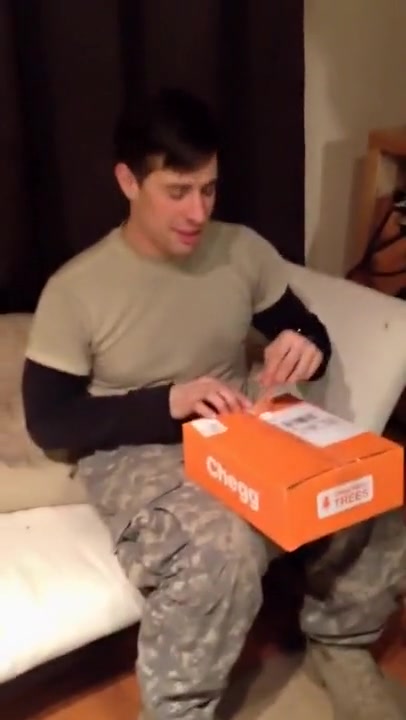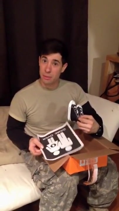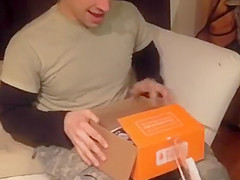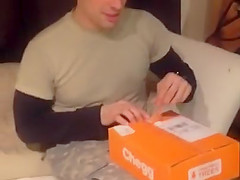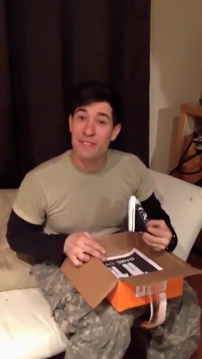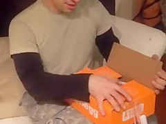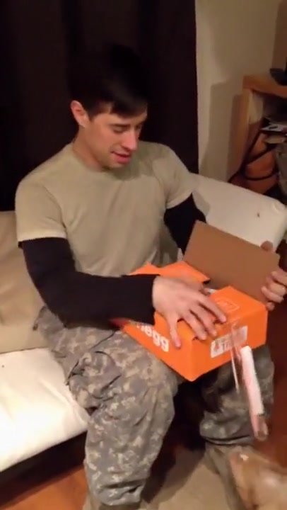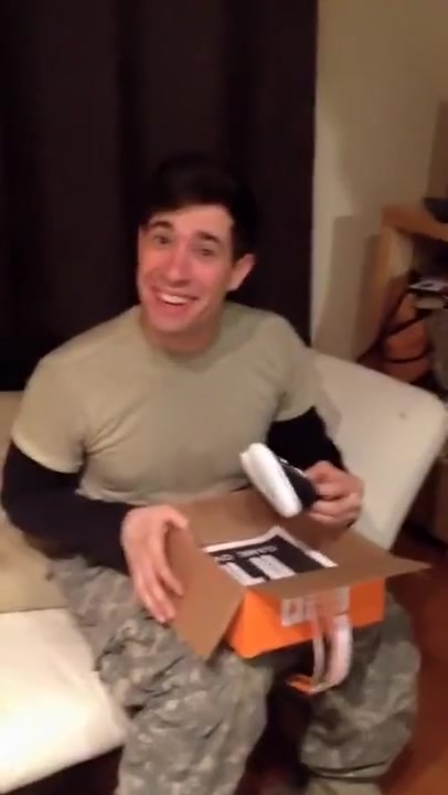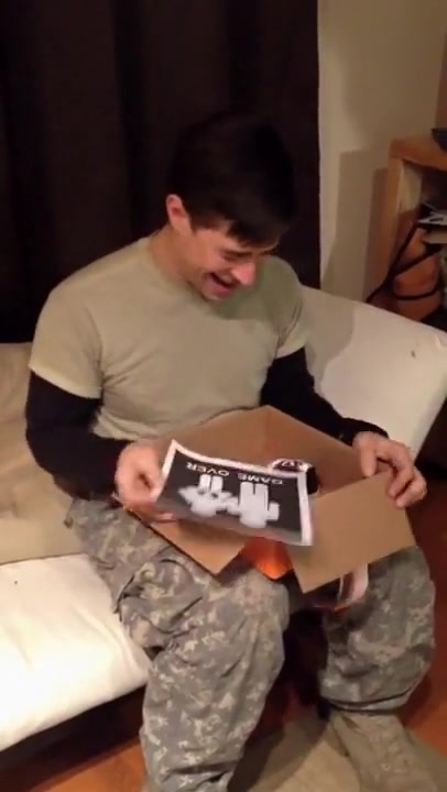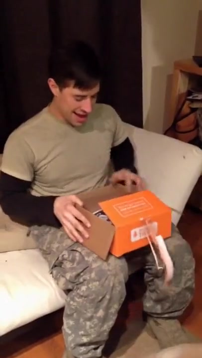 She surprises him using a shoebox.