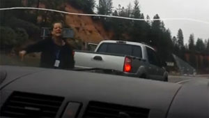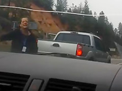 A crazy woman pretending to be a cop tries to run these girls off the road.