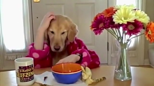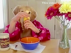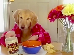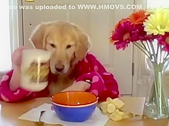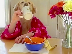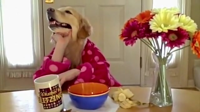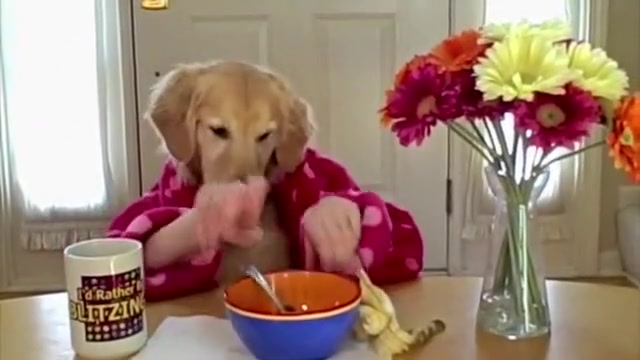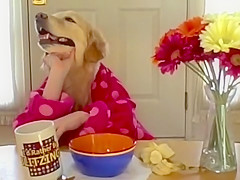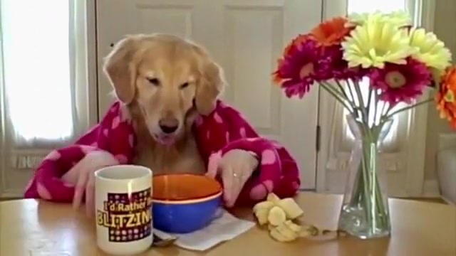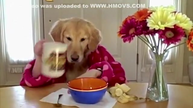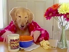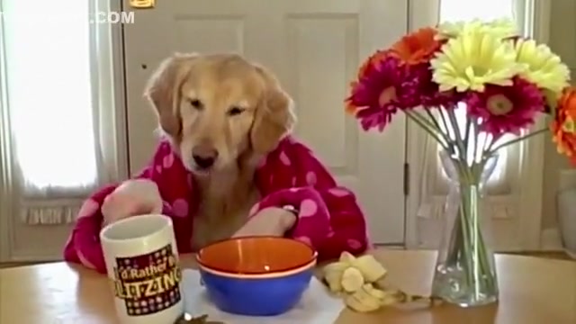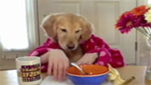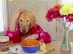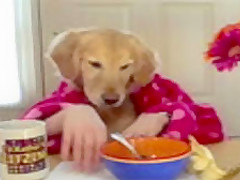 Golden Retriever Eating Cereal