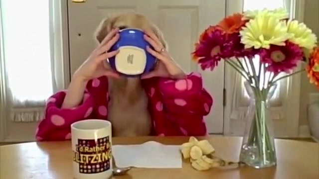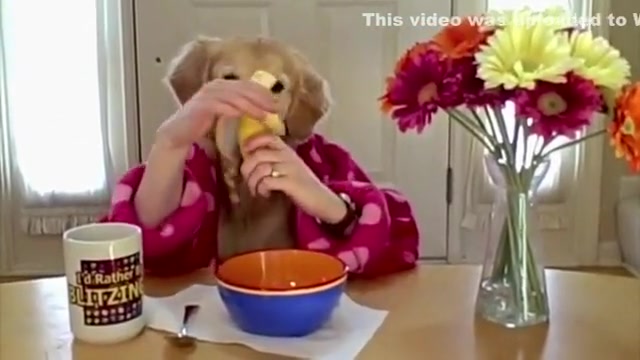 This amazing dog has human hands and likes his coffee and cereal in the morning.