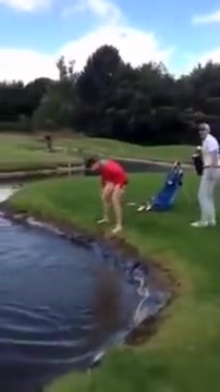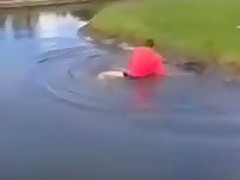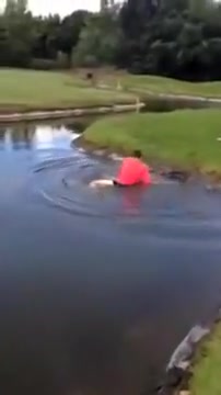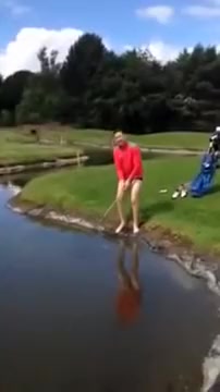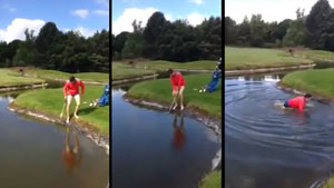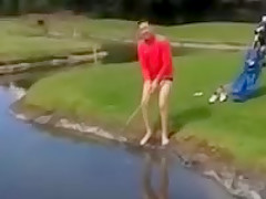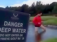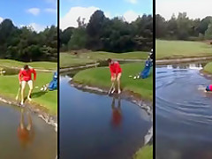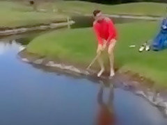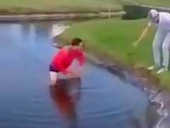 Golfer Slips Into Water Hazard and Can't Get Out