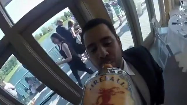 GoPro Attached To Fireball Whiskey Bottle at Wedding