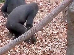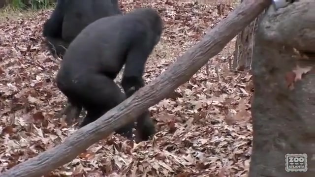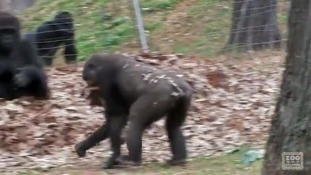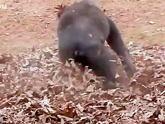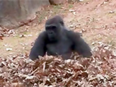 Gorillas Playing In Leaves