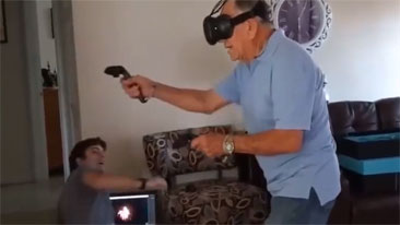 Grandpa Runs Out of Bullets vs Virtual Zombies