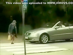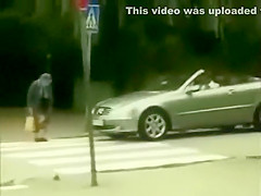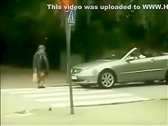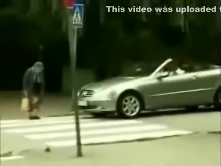 This guy got what he deserved. He was beeping at an old woman trying to cross the road. She hit his car with her handbag and set off his airbag. Priceless!!!