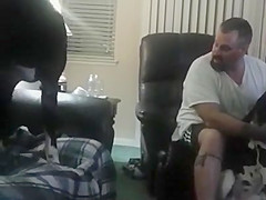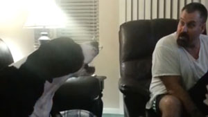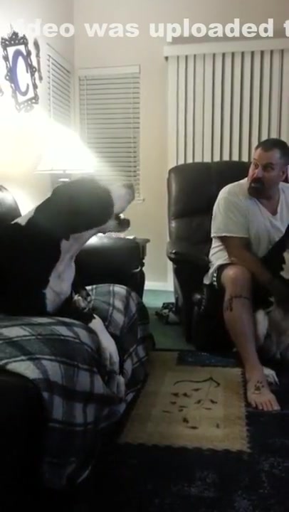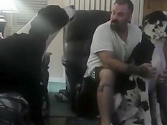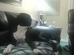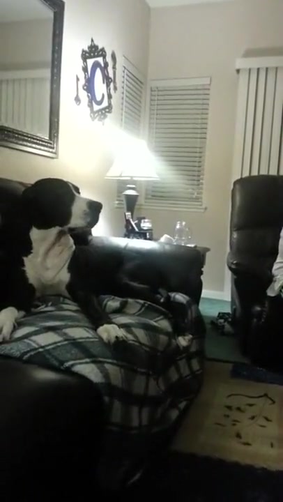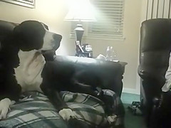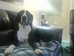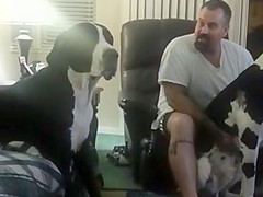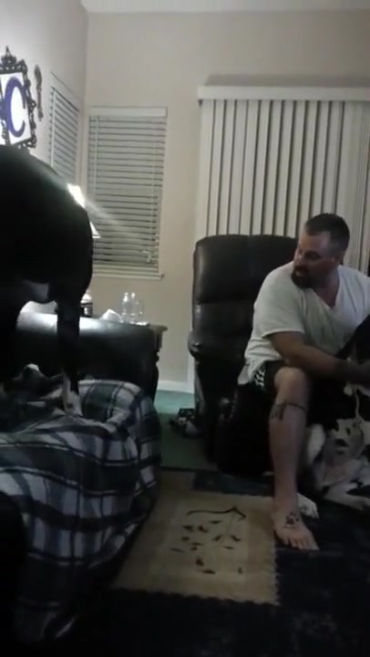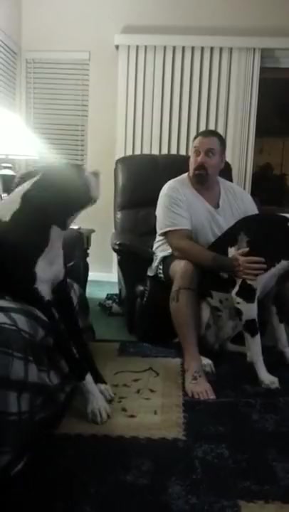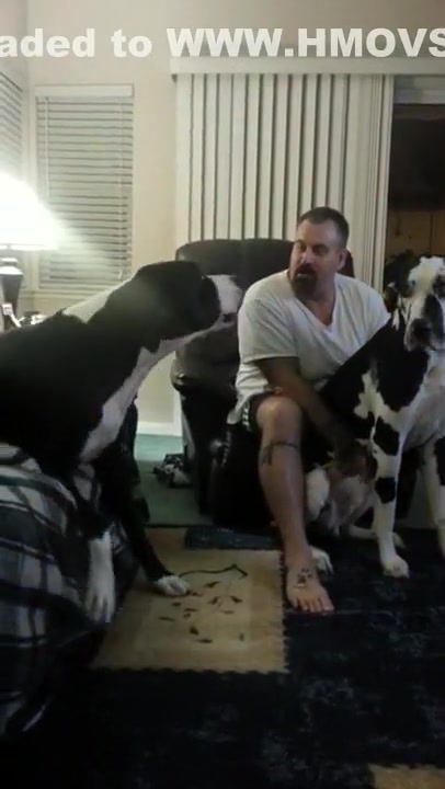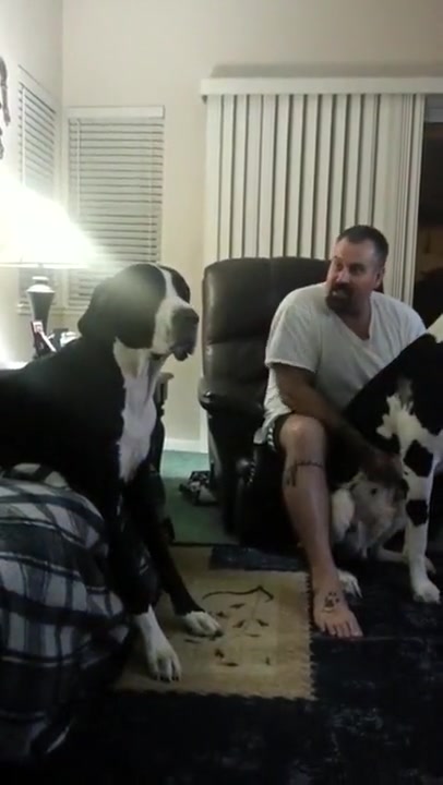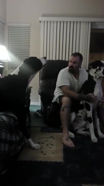 A giant great dane throws a hissy fit when his owner gives lovies to the other dog.