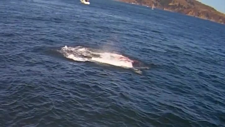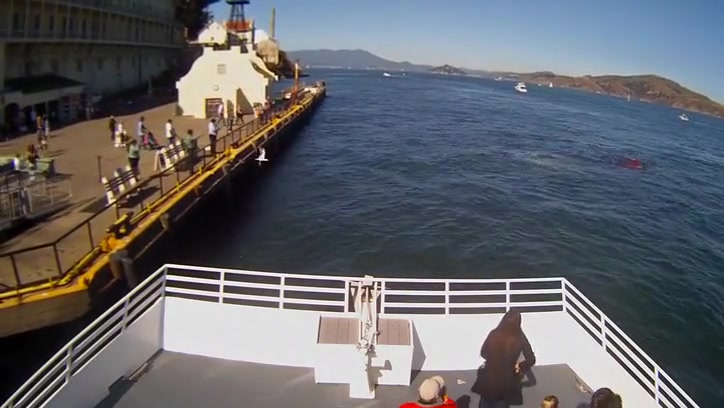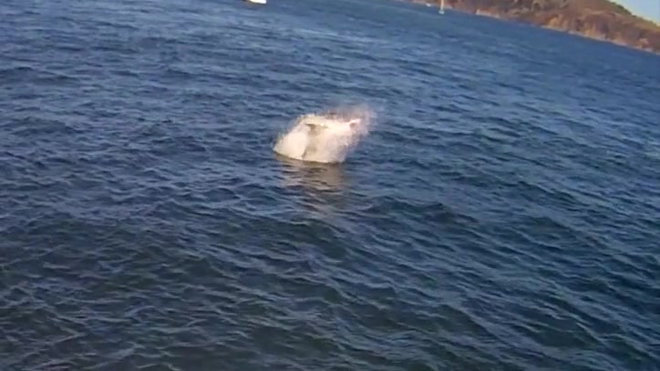 First ever great white shark attack caught on cam in San Francisco bay right next to Alcatraz.