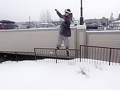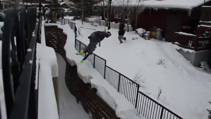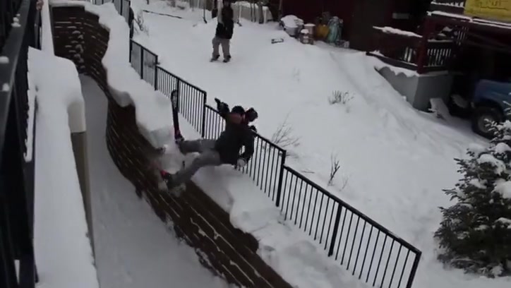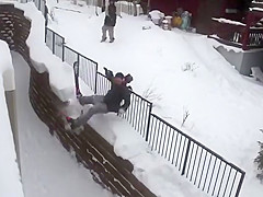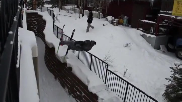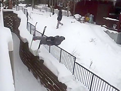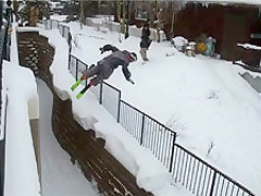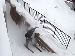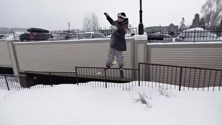 Grinding a Steel Fence On Skis Gone Wrong
