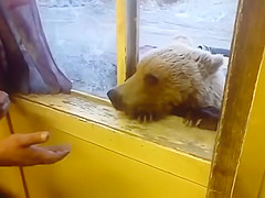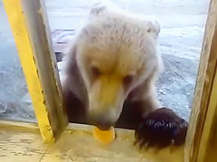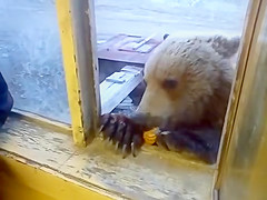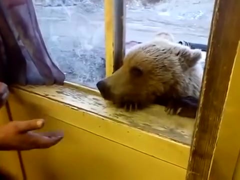 Grizzly Bear Pays a Visit To Some Russians In a Cabin