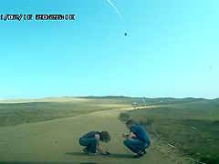 A Russian couple stumble across a groundhog that is too fat to get out of his hole.