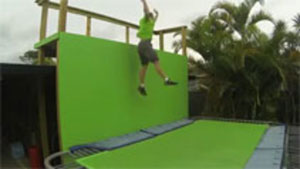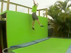 WARNING: Graphic Content! This guy snaps his ankle while wall jumping on his trampoline.