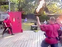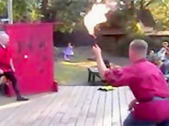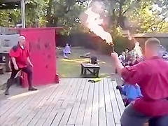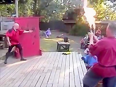 Guy Attempts To Catch Flaming Knife