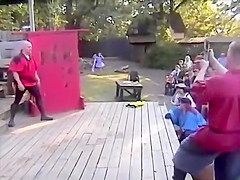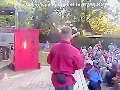 Guy attempts to catch a flaming knife. Will he succeed?