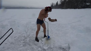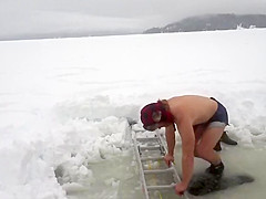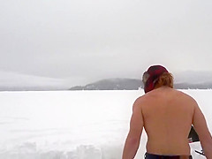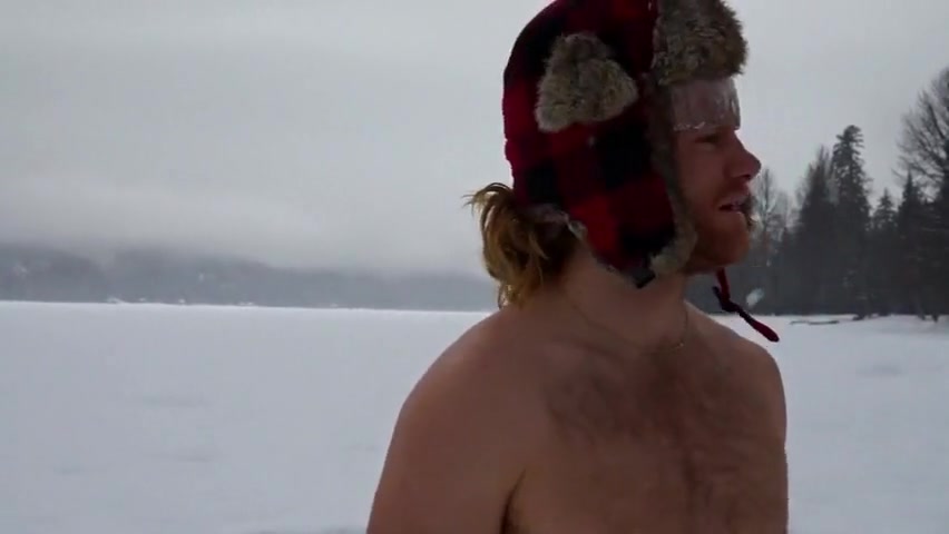 Guy Challenged To Take a Dip In a Frozen Lake
