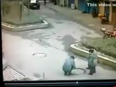 Guy Drops a Firecracker Down Manhole