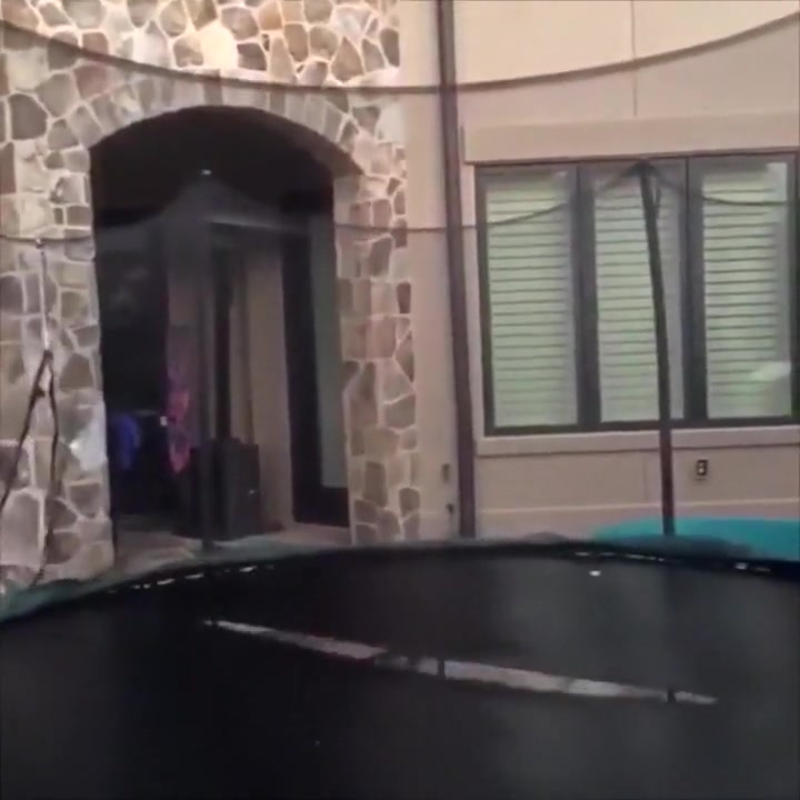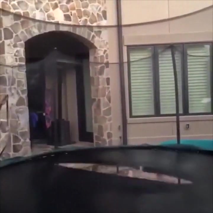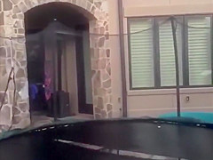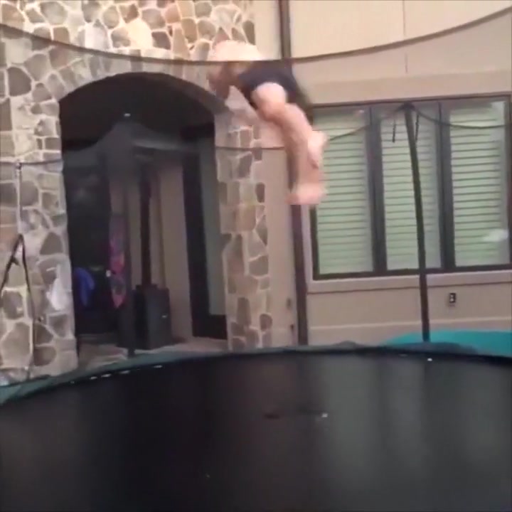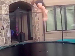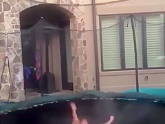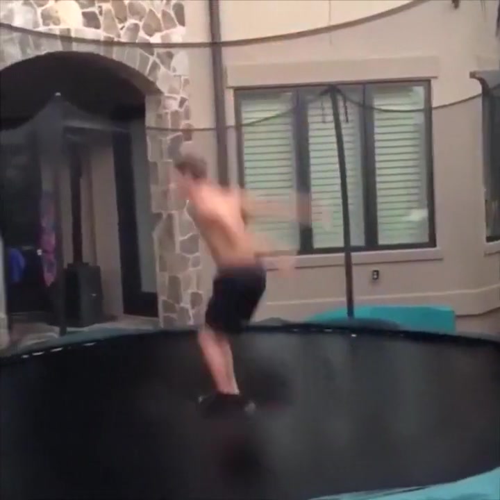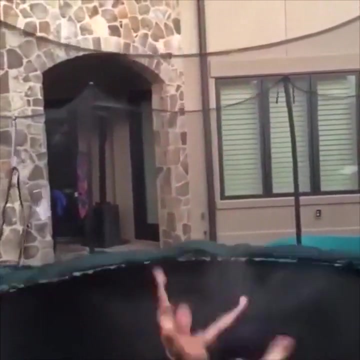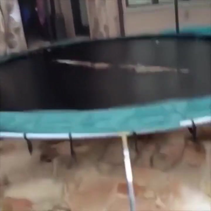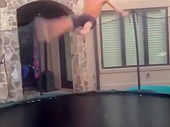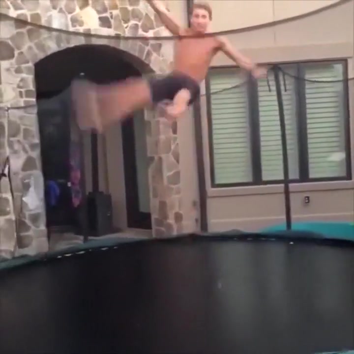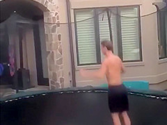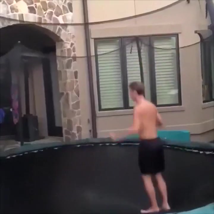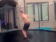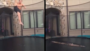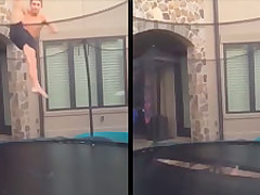 This guy gets swallowed whole by his trampoline.