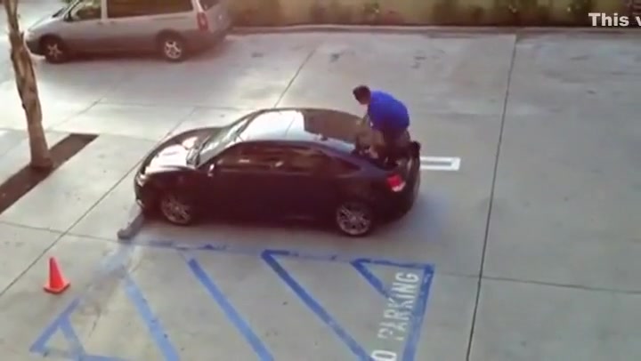 Normally it's the chick that freaks out on the guy but in this situation it's the guy getting revenge on his girl for cheating on him.