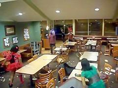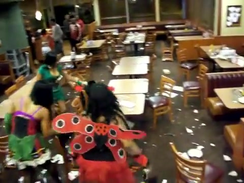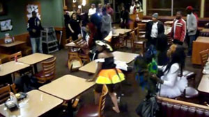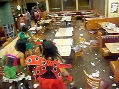 A huge fight breaks out on Halloween at a Denny's restaurant. The place gets decimated.
