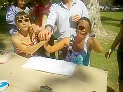 One of these girls gets owned pretty bad...LOL at the guy giving her ice!