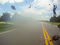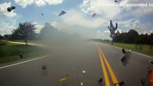 Somehow this guy actually survived with only a few broken bones. Thank god for helmets!