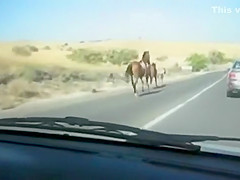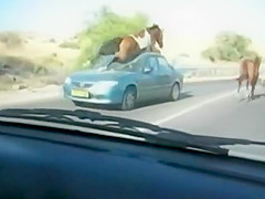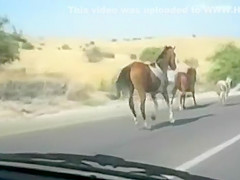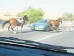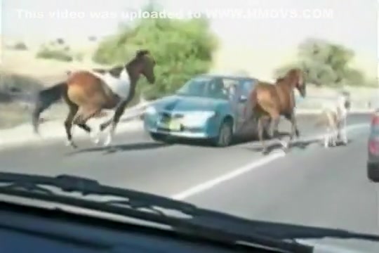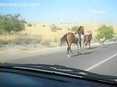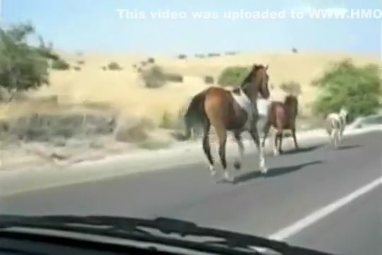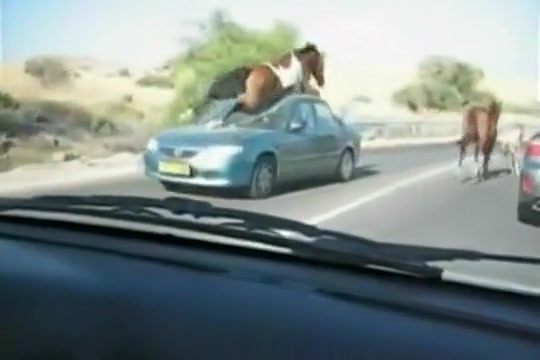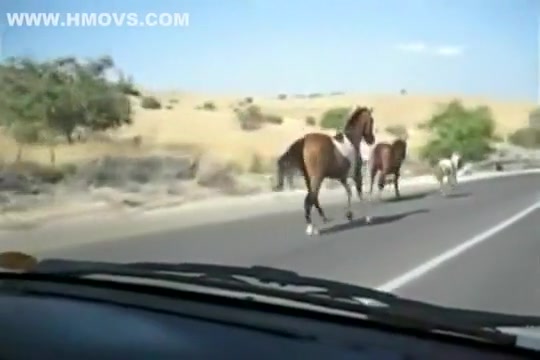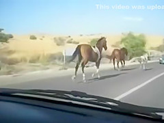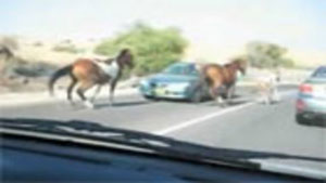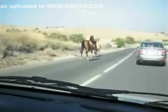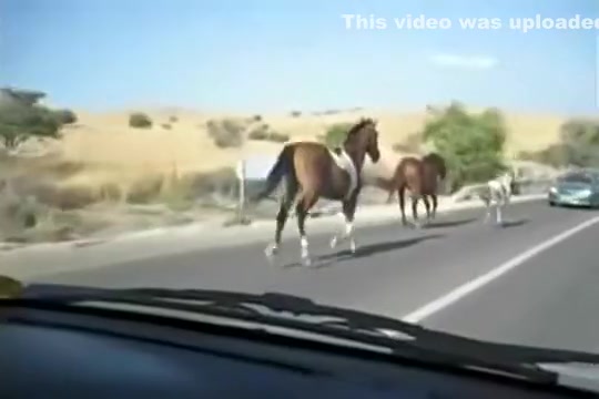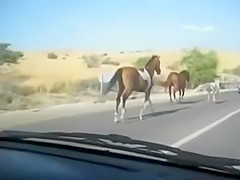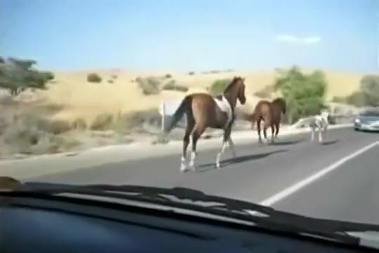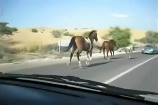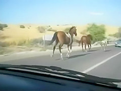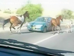 A group of wild horses are galloping down the road when all of a sudden a car going the other way appears out of nowhere. The car loses!