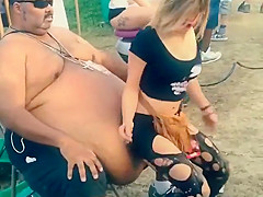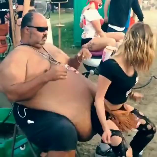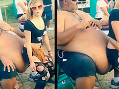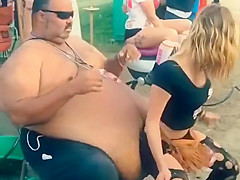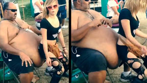 Hot Chick Gives Lap Dance To Fat Man's Belly