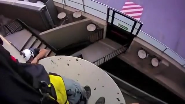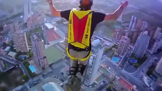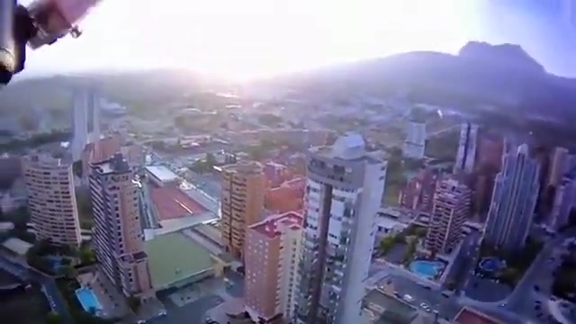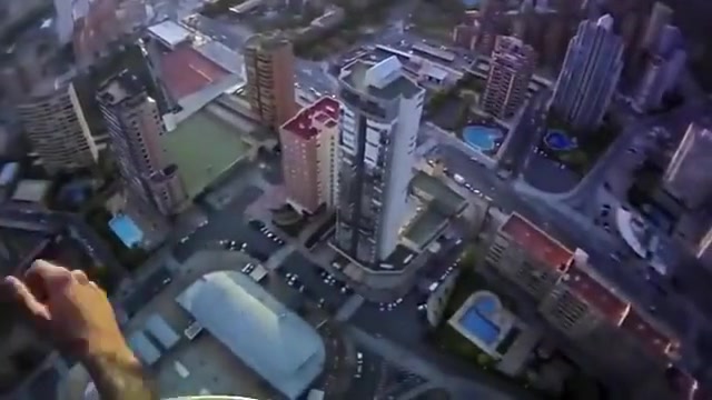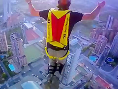 Crazy Base Jump From Outside Hotel Elevator