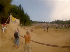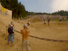 Rambo Douchebag Crashes Harley In Front of Crowd