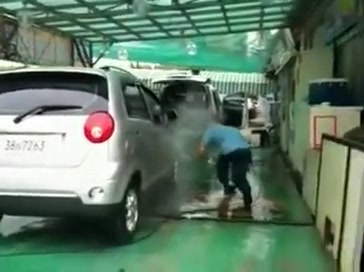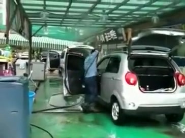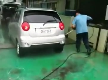 Dude even power washes with the doors open!