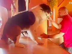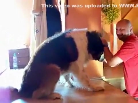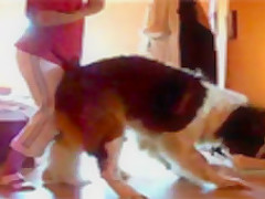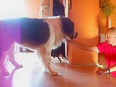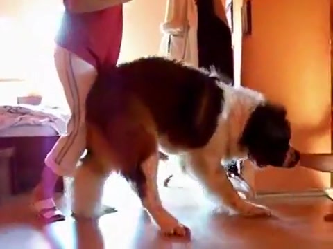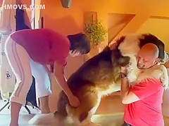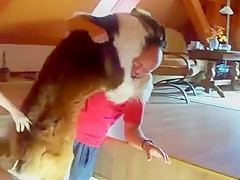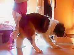 That's a heavy dog to carry down the stairs.